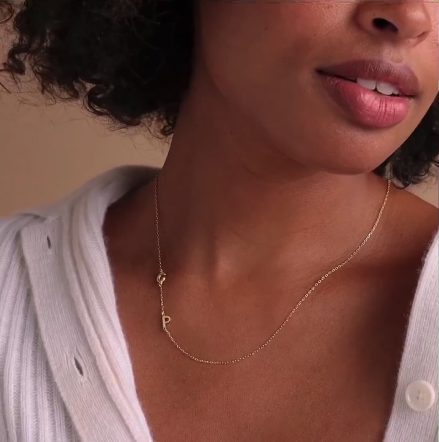 Stand out this holiday season with the unique Sideways Initial Necklace. Bold yet delicate, this striking piece combines understated charm with an unexpected twist, making it the perfect blend of soft elegance and statement style. A thoughtful and stylish Christmas gift for someone special.